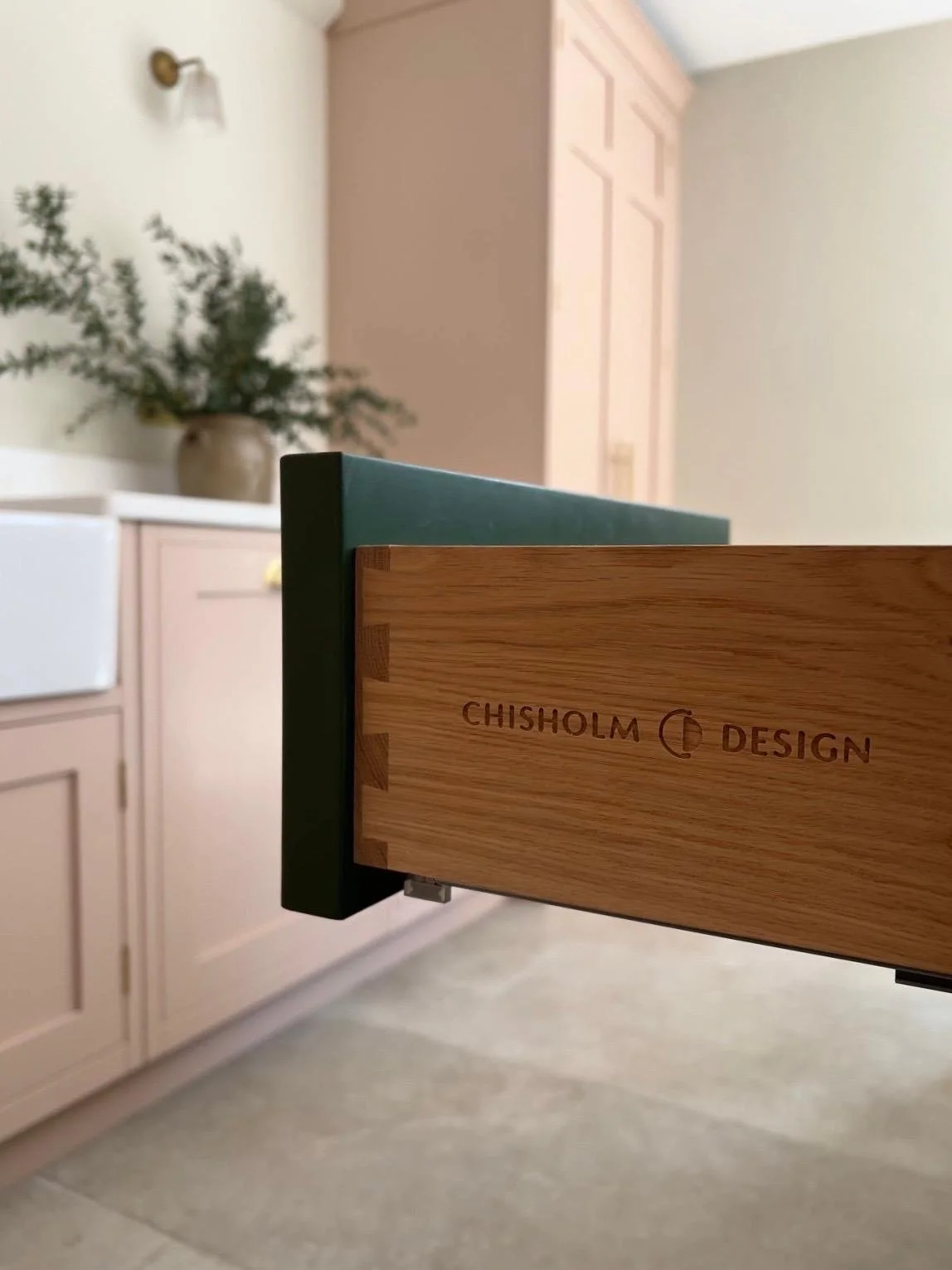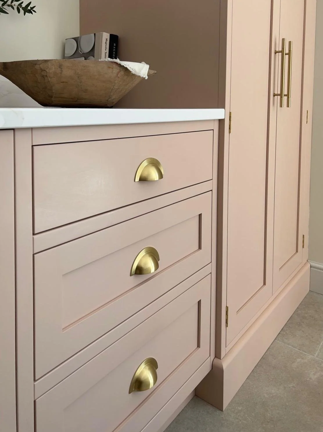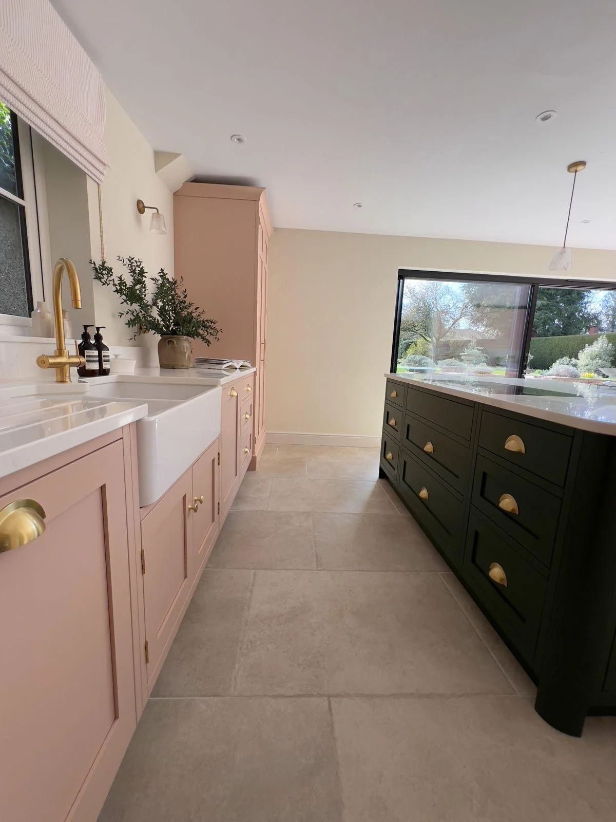 PROJECT: Farnham Pink and Green Kitchen | LOCATION: Farnham YEAR: 2024